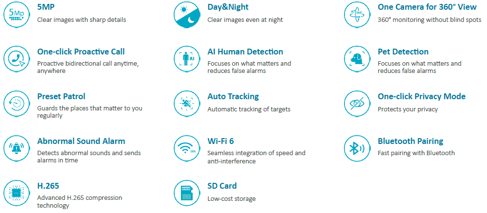 Profitez d’une image haute définition 5MP pour ne rien manquer, avec un suivi intelligent capable de détecter et suivre automatiquement les mouvements. Grâce à la détection humaine et animale, recevez uniquement les alertes qui comptent vraiment.